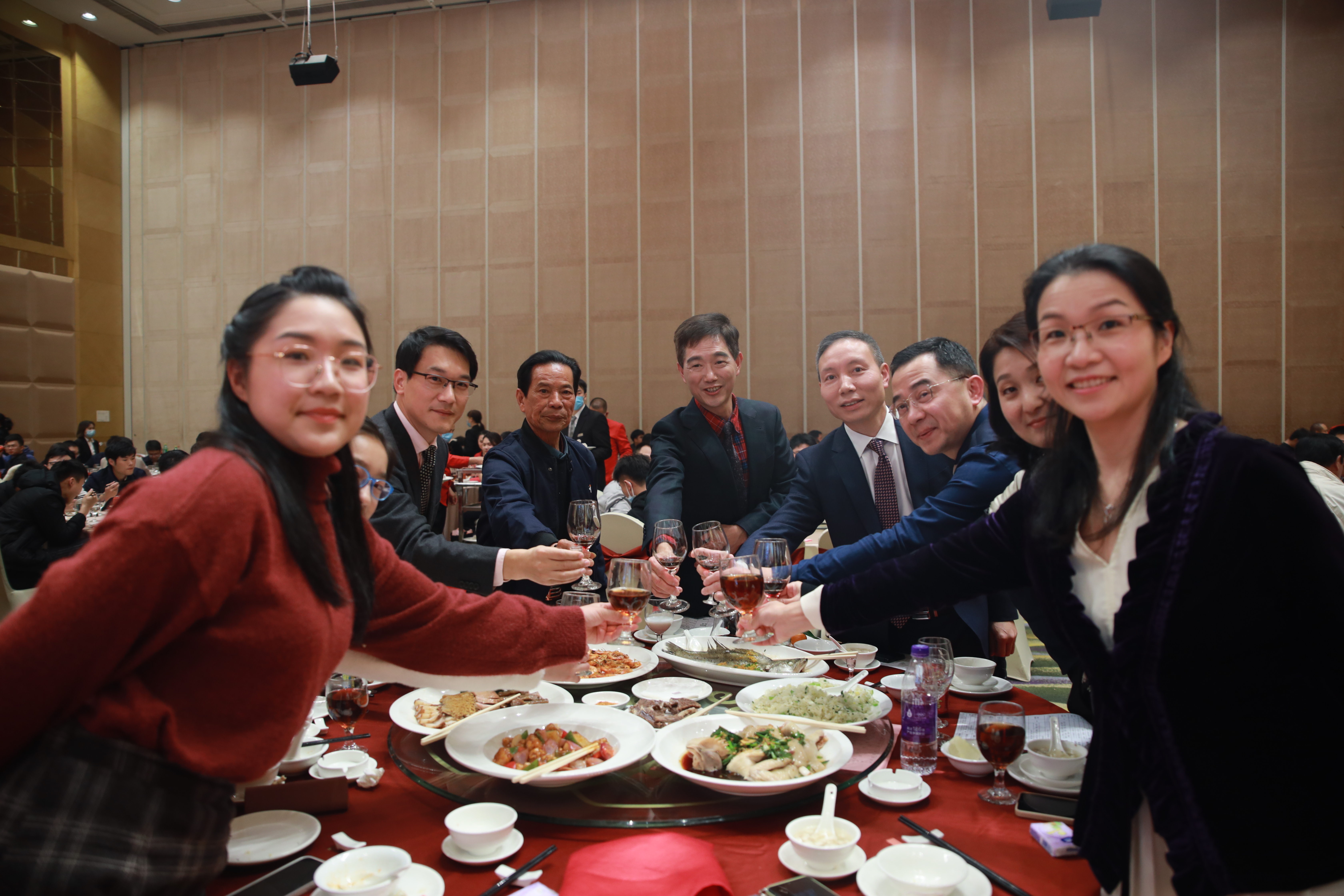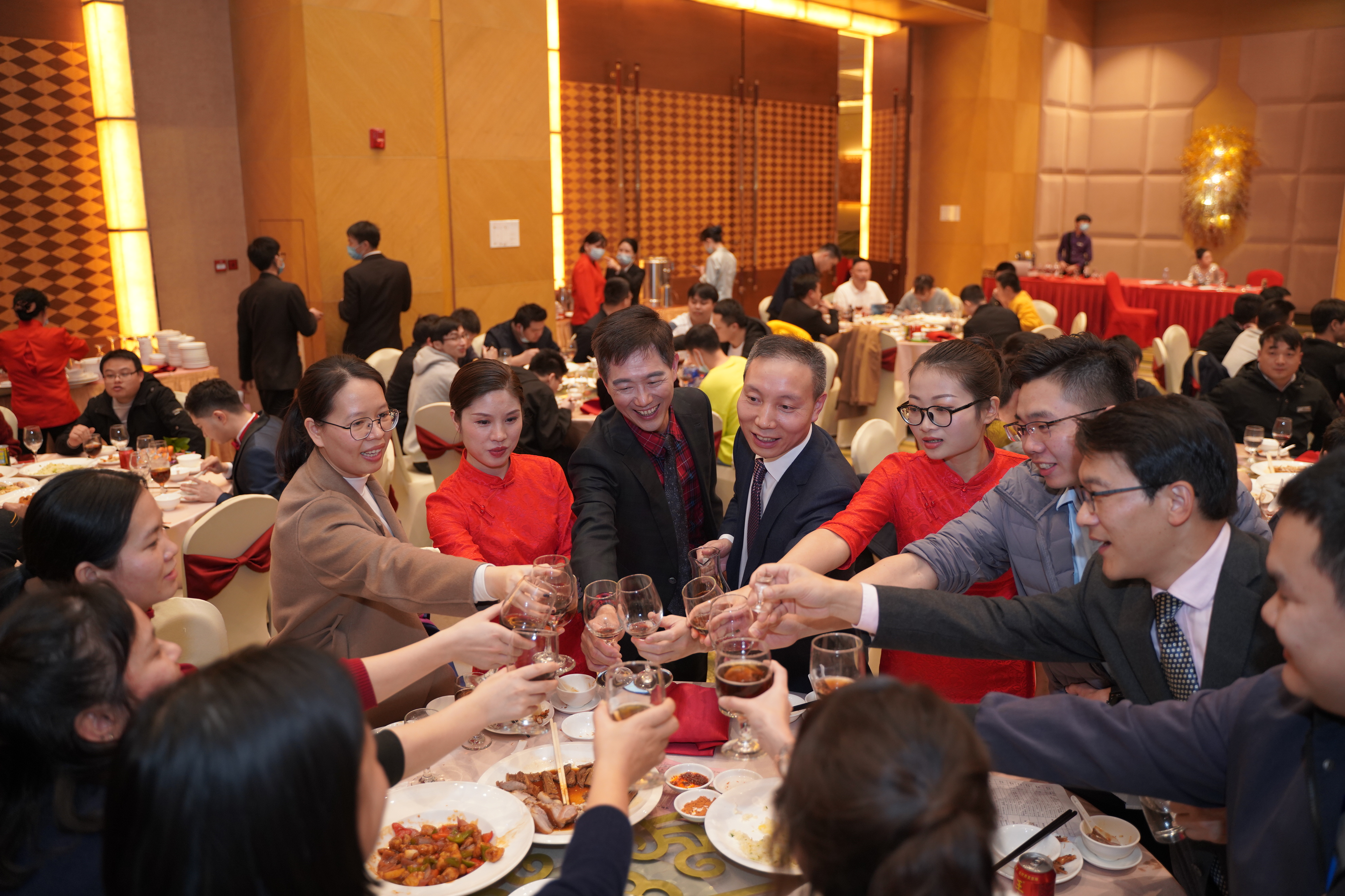 G22恒峰科技的兄弟姐妹们开怀畅饮、品尝美食,现场气氛热闹,人人喜气洋洋。